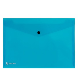 Buste Pull con bottone A4 realizzate in polipropilene trasparente azzurro. Chiusura con bottone a pressione. Formato utile: 21x29,7cm. Marca King Mec Gruppo statistico CARTELLINE IN PLASTICA CON BOT