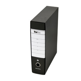 Registratore STARLINE modello StarBox, con struttura in cartone rivestita in carta goffrata stampata e risguardo bianco. Dotato di meccanismo a leva in acciaio nichelato con pressino. Custodia in fibrone nero rivestita in carta usomano. Anello di estrazio Marca Starline Gruppo statistico REGISTRATORI A LEVA