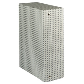 Scatola archivio in legno Universale. Realizzata in cartone, legno, tela e carta stampata Paglia di Vienna. Scatola ad apertura parziale con chiusura a 2 bottoni. Formato utile: 38x27cm. Dorso 12cm. Marca Brefiocart