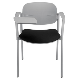 Seduta visitatore/interlocutore con struttura verniciata grigia e sedile rivestito - tavoletta scrittoio antipanico dx - completa di braccioli. Rivestimento in tessuto "PLUS - Bondai" 100% poliestere no flame e certificazioni di infiammabilità 1.IM UNI 91 Marca UNISIT