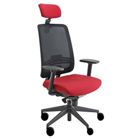 Seduta girevole su ruote operativa, con schienale in rete, elevazione a gas e supporto lombare regolabile meccanismo synchro con anti shock - schienale regolabile in altezza. Braccioli e poggiatesta inclusi. Rivestimento in tessuto "FASHION - Salò" 100% P Marca UNISIT