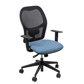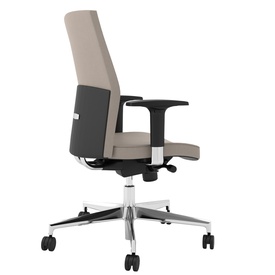 Seduta operativa girevole con elevazione a gas - meccanismo synchro con 4 blocchi anti shock - meccanismo a contatto permanente - schienale con supporto lombare regolabile. Completa di braccioli regolabili e base in nylon. Rivestimento in tessuto "ECO-Eco Marca UNISIT