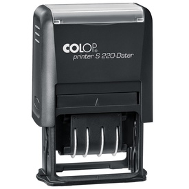 Timbro datario S220 autoinchiostrante con caratteri alti 4mm. Fusto antiurto in ABS. Monta tampone E/200. Marca Colop