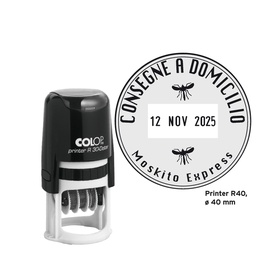 Timbro datario autoinchiostrante con piastra 37x58mm da personalizzare. Massimo 7 righe di testo e data in posizione centrale. Utilizza tampone E/2600- E/2600-2. Marca Colop