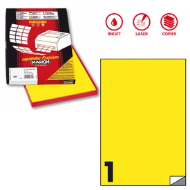 Scatola da 100 fogli di etichette in carta adesiva permanente nei colori fluo in formato 21x29,7cm adatti per fotocopiatrici, stampanti laser, inkjet. Marca Markin Gruppo statistico ETICHETTE CARTA COPY-LASER-INK