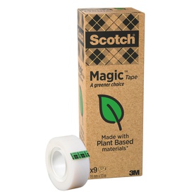 Nastro adesivo Scotch® Magic™ 900 Nastro adesivo invisibile permanente, supporto in acetato di cellulosa, adesivo di origine vegetale, anima in cartoncino riciclato al 100%, pack in cartoncino riciclato al 100%. Marca Scotch Gruppo statistico NASTRI ADESIVI