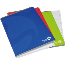 Rubrica in carta in pura cellulosa da 80gr. Rilegatura a punto metallico, 1 rigo. Copertina patinata lucida da 250gr. Plastificazione opaca e verniciatura serigrafica lucida. Assortimento in 8 colori. Formato A4- 21x29,7. 60 fogli. Marca BM