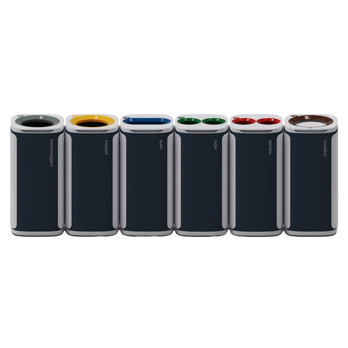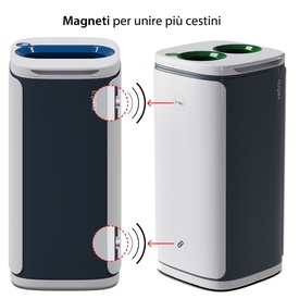 Il design elegante e moderno permette la sua collocazione in ogni tipo di ambiente. Ideale per creare isole ecologiche in ufficio e negli spazi pubblici. Due aree circolari, presenti ai lati della scocca esterna, contengono dei magneti per far agganciare
