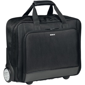 Trolley in tessuto tecnico. Grande scomparto centrale con imbottitura porta notebook. Quattro tasche frontali con cerniera e tasche porta oggetti. Maniglia imbottita super comfort. Cinghie di fissaggio. Manico telescopico a scomparsa. Targhetta portanome.