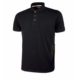 Polo, manica corta, in piquet di polycotone. Slim fit. Collo e bordo manica a costine elasticizzate. Collo chiuso da tre bottoni in tono. Fettuccia para- sudore bianca. Tasca porta cellulare sul fianco sinistro con travetta rossa. Nastro rosso/reflex su c Marca U-Power