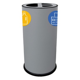 Contenitore tondo 3 scomparti con 4 pittogrammi per raccolta differenziata magnetici in acciaio verniciato. Dimensioni: Ø45xH72cm. Marca STILCASA