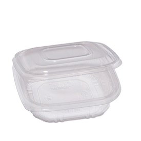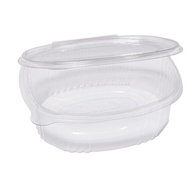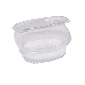 Contenitori ovali in PET con coperchio incernierato. Ideali per cibi freddi, con conservazione in frigo e freezer. Modello: G0-250 Dimensioni superiori esterne:12,2 x 10,4 Dimensioni superiori interne:10,3 x 8,2cm Fondo: 9,5 x 7,4cm Altezza: 3,8 Capacità: