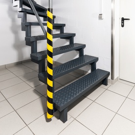 Profilo di protezione adesivo per tubolari in schiuma poliuretanica (100% riciclabile) flessibile • Per uso interno • Adatto per tubi o cavi di diametro 20 - 40 mm presenti in prossimità di camminamenti per motivi strutturali • Utilizzabile in aree di produzione, reparti spedizioni e magazzini, trombe delle scale o in ambienti stretti come scantinati o garage con passaggi bassi, ecc. • Adatto per segnalare punti pericolosi, proteggere tubolari e prevenire infortuni dovuti a urti • I profili possono essere tagliati alla lunghezza desiderata con un taglierino affilato • Colore conforme alla norma ASR A1.3, simile a RAL 1004/9003 (giallo segnale/nero segnale) • Classe di incendio conforme alla norma DIN EN 13501-1 / classe E • Resistente alla temperatura da -30°C a +70°C • Lunghezza profilo: 1 m • Diametro interno: 30 mm .