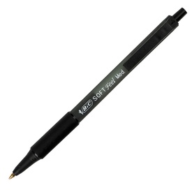 Fusto trasparente con inchiostro visibile. Impugnatura in gomma. Clip in metallo. Pulsante e grip nello stesso colore dell'inchiostro. Punta 1,0mm. Colore: nero. Confezione 12 pezzi. Marca Bic