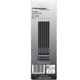 Matita esagonale STARLINE in legno da 19cm. Confezione blister da 6 matite. Gradazione HB. Caratteristiche di questo prodotto: Articolo: STL9000B Gradazione: HB Confezione: 6pz Marca Starline Gruppo statistico MATITE GRAFITE