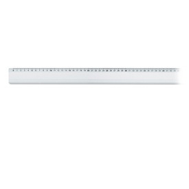 Riga in materiale plastico. Smusso e tirachina. Con milimetratura speciale invertita da destra verso sinistra. Marca Arda