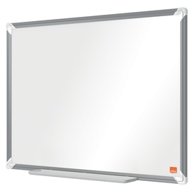 Lavagna bianca in acciaio laccato con superficie magnetica. Adatta per usi moderati. Buona capacità di cancellatura e resistenza a macchie di inchiostro, segni di pennarello, graffi e ammaccature. Dotata di portapennarelli rimovibile. Garanzia di 15 anni. Marca Nobo